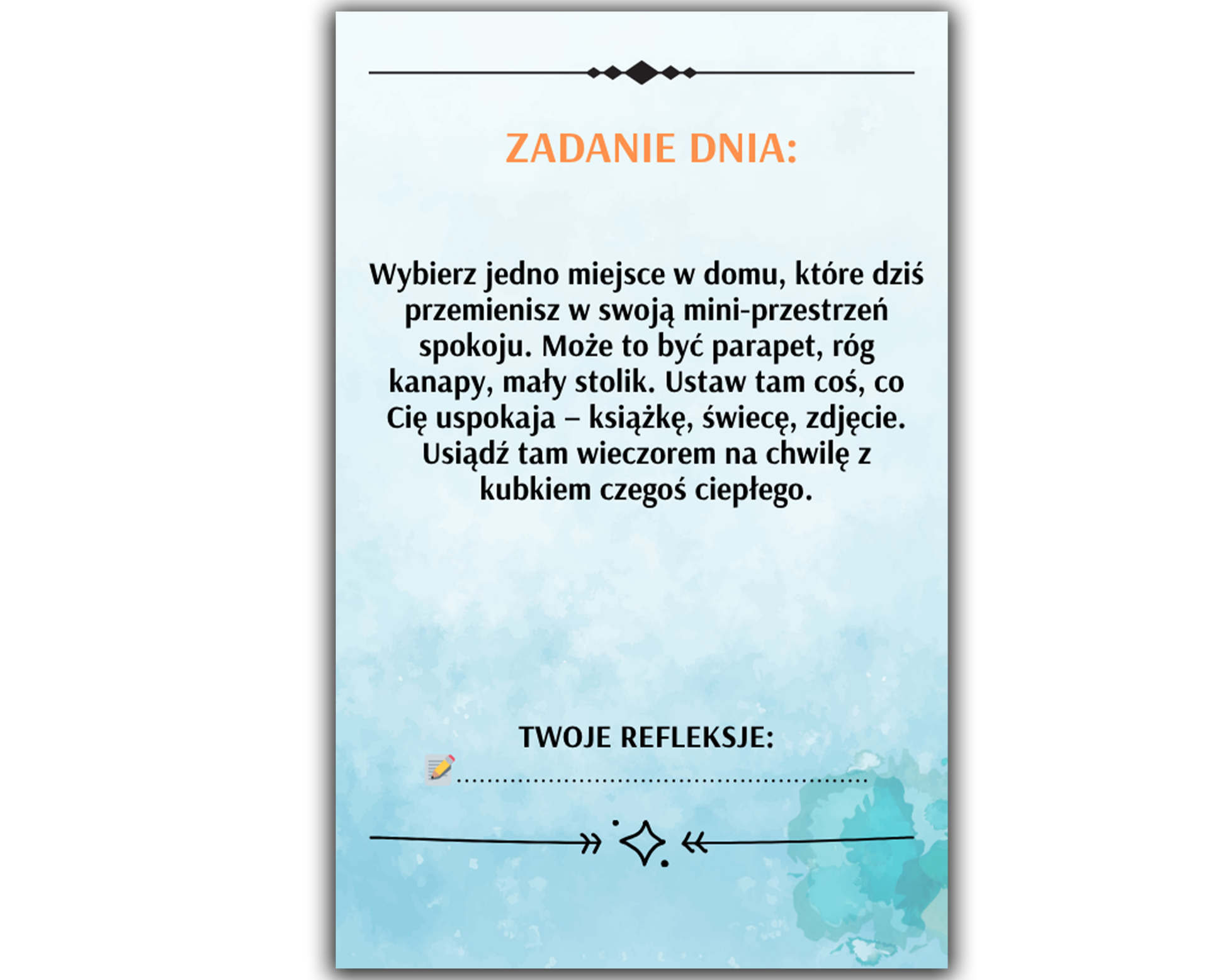 21 dni, 21 krótkich, prostych zadań. Codzienna chwila dla siebie – bez pośpiechu, bez ciśnienia, za to z uważnością i czułością.