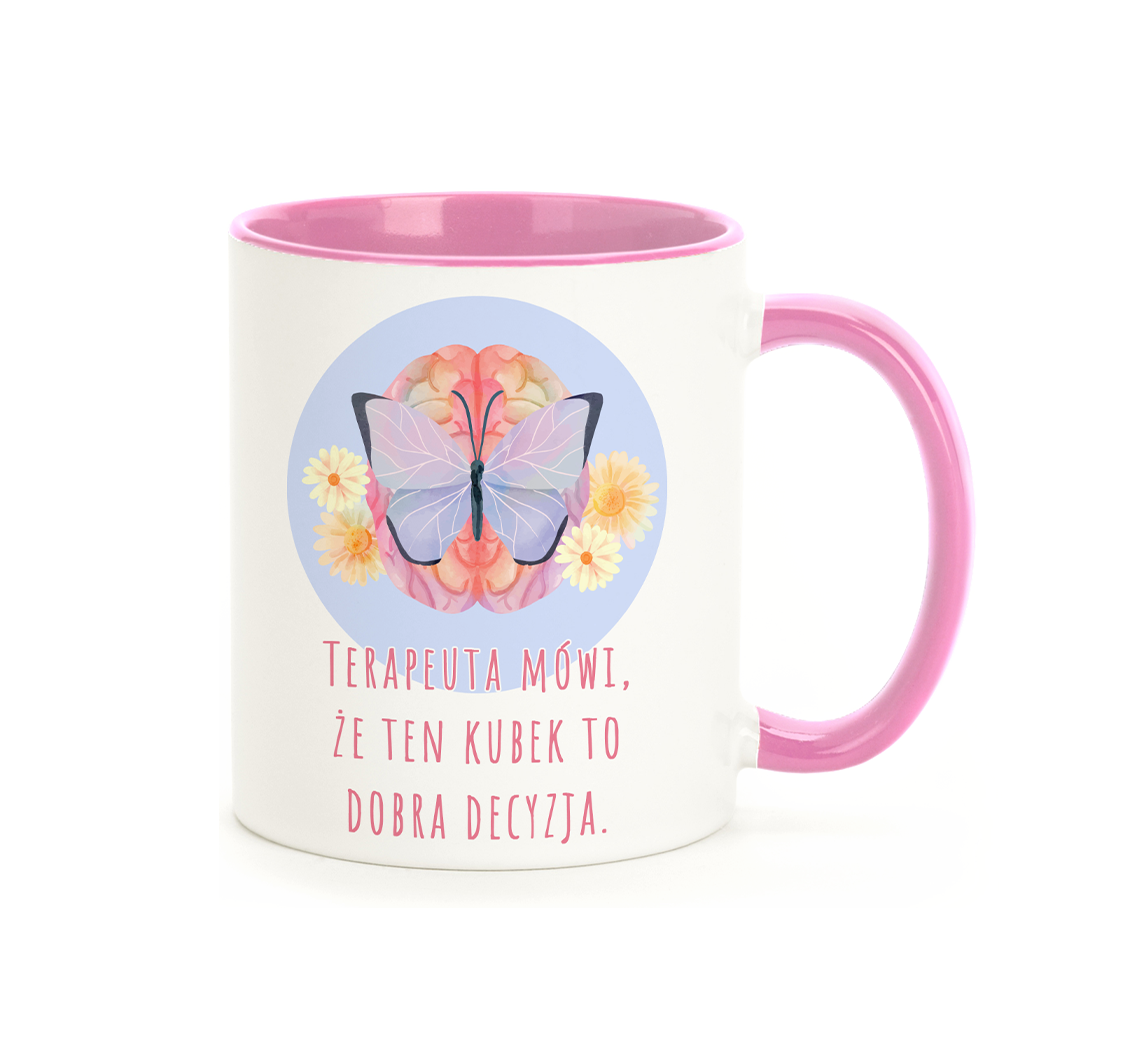 Kubek "Terapeuta mówi, że ten kubek to dobra decyzja." - Różowy