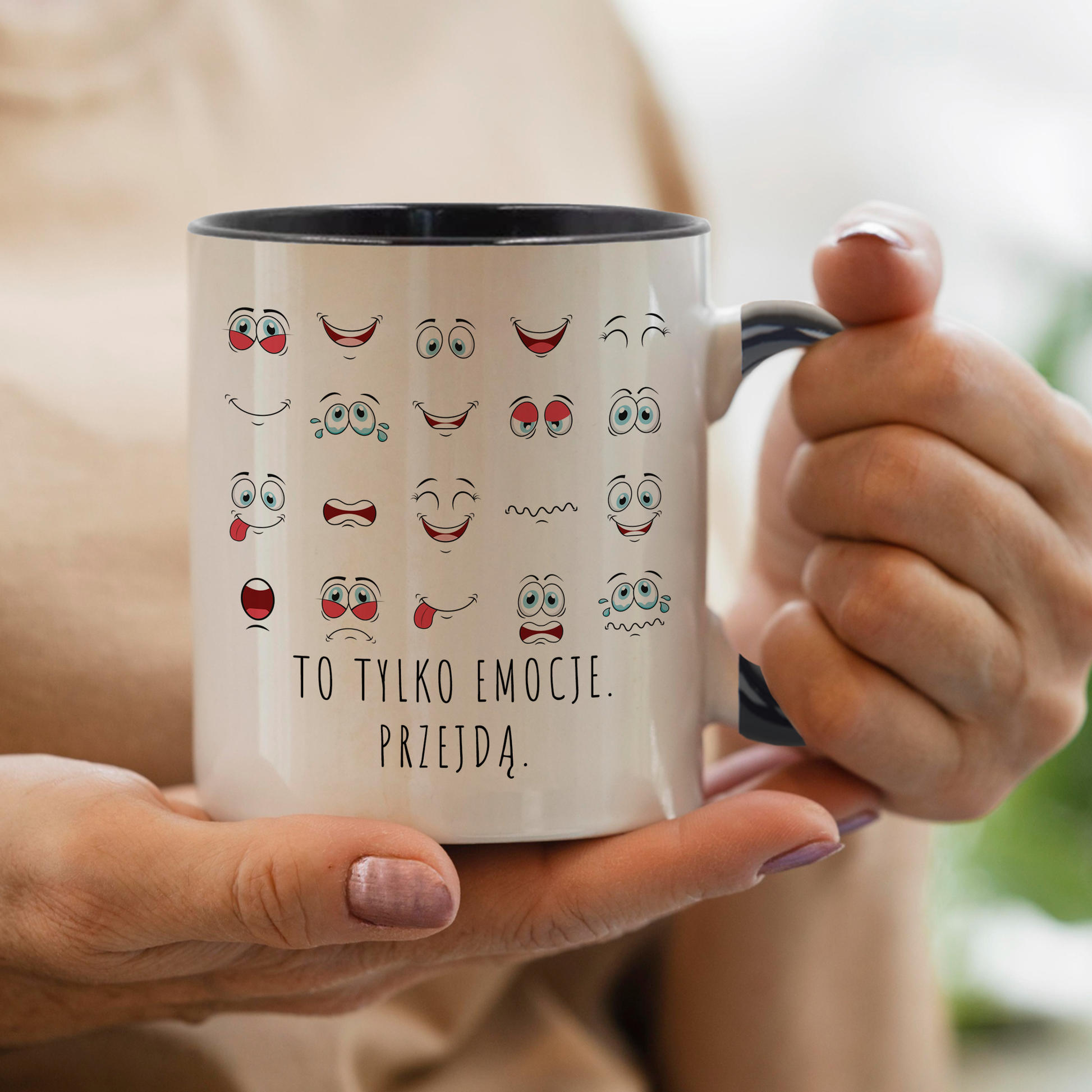Ten oryginalny kubek z napisem „To Tylko Emocje. Przejdą.” to idealny towarzysz porannej kawy dla każdego, kto kocha psychologię, samorozwój i... błyskotliwe cytaty.
